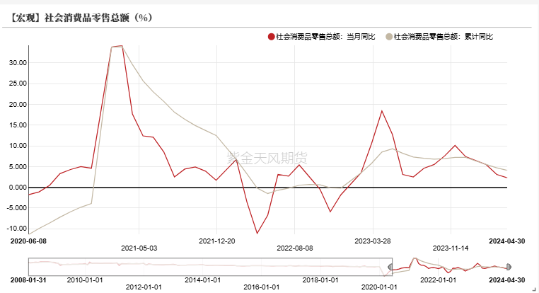 实际消费层面,我国社会消费零售总额同比有所下滑,边际增长逐步放缓,我们预计国内耐用品消费板块全年将会上涨1%。