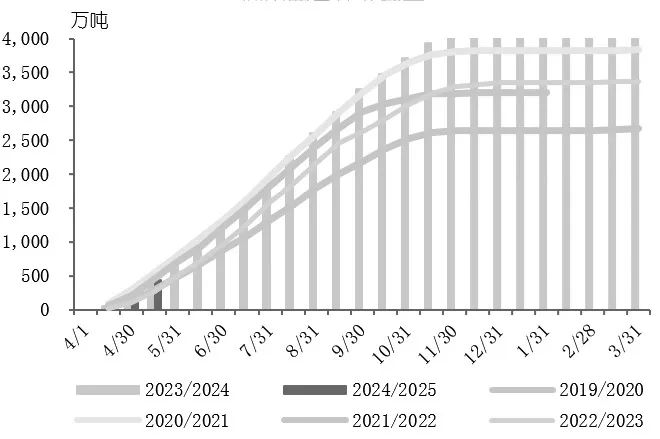 图为印度累计产糖量(单位:万吨)