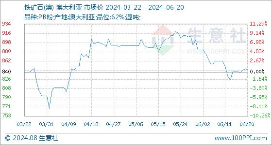 6月20日生意社铁矿石(澳)基准价为847.11元/吨