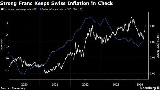 目前尚不清楚瑞士央行官员将如何判断这一变化。他们长期以来一直使用干预措施来抑制瑞郎汇率,但如果他们想让瑞郎贬值,降息也是一个选择。另一方面,避免任何宽松政策也可能限制进口通胀。