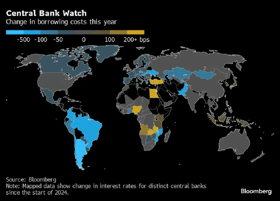 无论决策者做出什么决定,他们的沉默只是投资者前景蒙上阴影的一个因素。判断全球的货币政策变得更加艰难,加拿大和欧元区本月的首次降息与美联储越来越不愿在今年年底降息或根本不会采取行动形成鲜明对比。