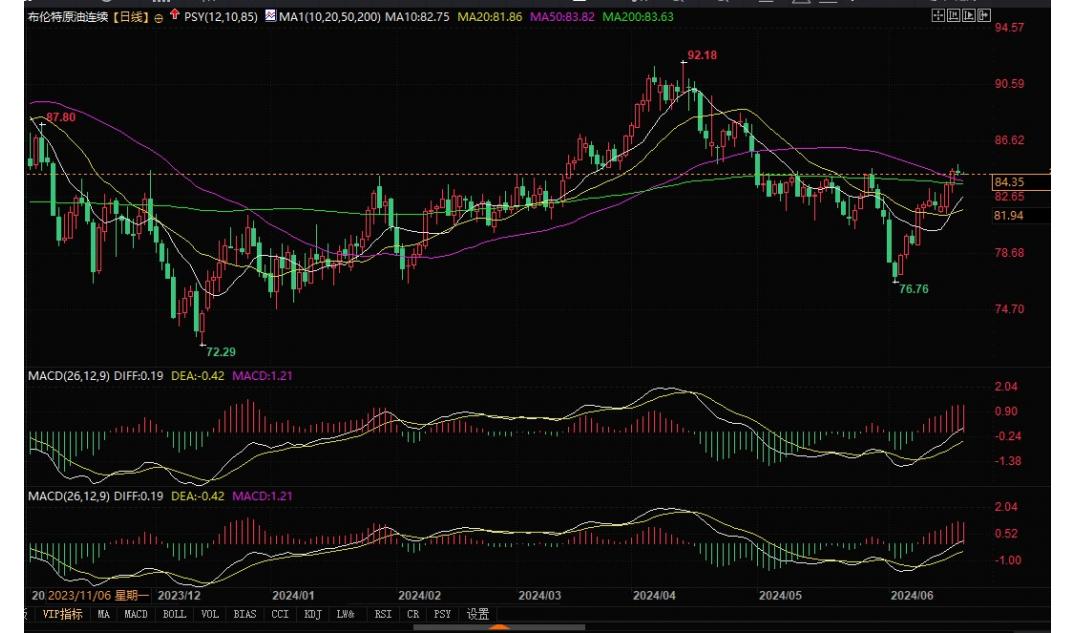 北京时间6月20日10:07,布伦特原油价格报84.34美元/桶