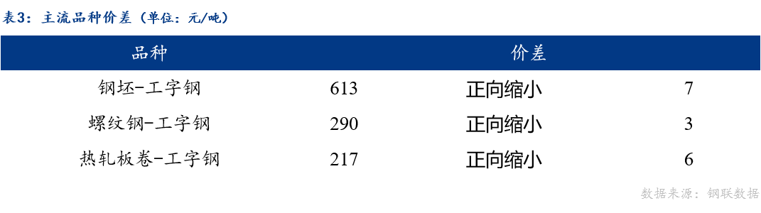 从品种价差来看,今日工字钢与钢坯、螺纹钢、热轧板卷价差正向缩小。
