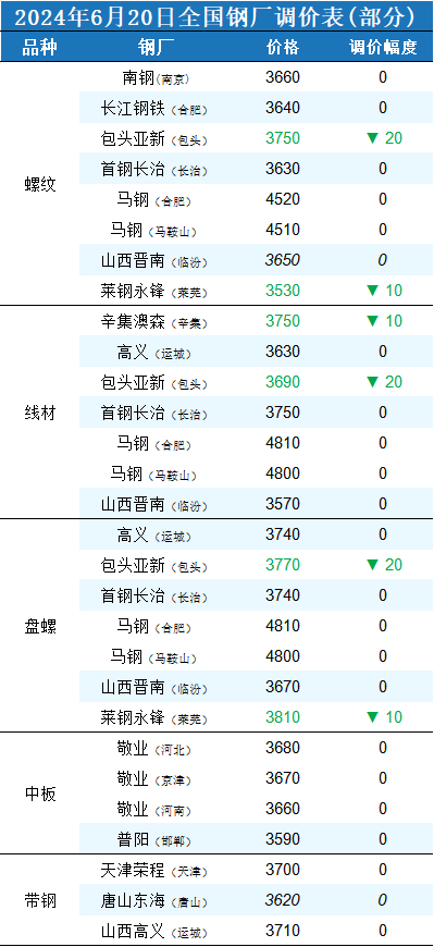 今日钢厂出厂价格平稳为主:建材类钢厂平稳,莱钢永锋、包头亚新、辛集澳森下调10-20;中板类钢厂平稳;带钢类钢厂平稳;