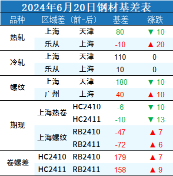 基差方面 热卷期货、螺纹期货下调21、31;上海热轧、螺纹现货下调20、10,故热卷期现差收缩、螺纹期现差扩张、卷螺差扩张。