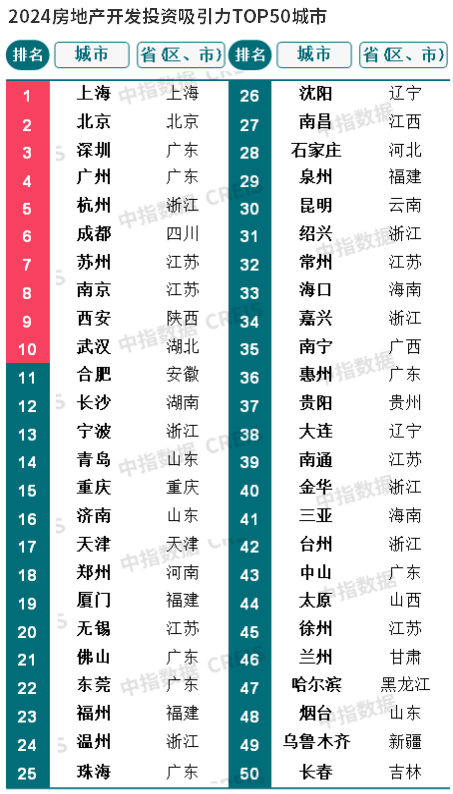 6月19日,中指研究院发布的《2024中国城市开发投资吸引力排行榜》显示,在4月30日政治局会议明确的楼市政策导向下,以及5月17日“一揽子”新政的落地,市场信心得到了一定程度的提振。各地积极响应政策,尤其是核心城市,政策效果逐渐显现。未来供需两端政策有望继续落地落实,促进市场预期修复,核心城市在政策优化、居民购买力较强等因素支撑下,房地产市场有望率先实现筑底企稳,企业也应抓住政策和市场窗口,持续深耕主流城市。