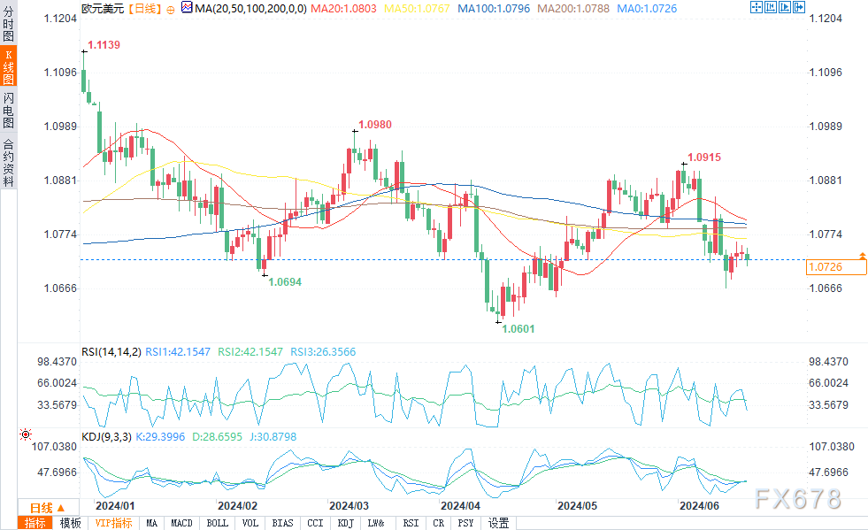 欧元/美元目前的交易价为1.0720,下跌0.19%。枢轴点1.07902对下一个价格走势至关重要。近期阻力位在1.08280,随后是1.08641和1.09166。