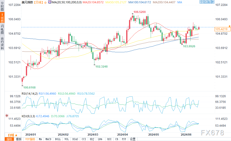 汇通财经APP讯——6月20日(周四)欧盘时段,美元指数在欧市盘初迅速拉升,盘中报105.4641,涨幅0.21%。