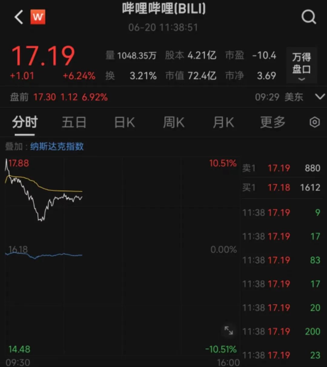 多只中概股走强。其中哔哩哔哩大涨超6%,盘中一度涨超10%。