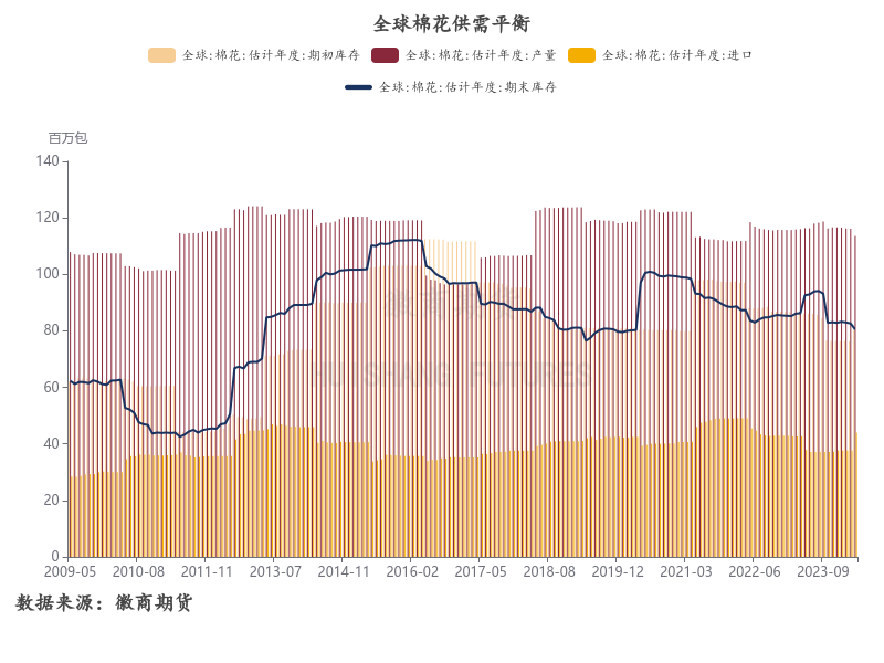 除了美棉丰产预期,当前南半球新棉大量上市,巴西及澳洲丰产预期较强。在需求弱支撑下,国际需求格局逐步转为宽松。