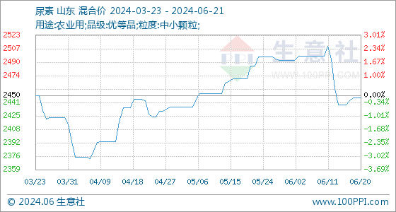 6月21日,生意社尿素基准价为2447.50元/吨,与本月初(2493.33元/吨)相比,下降了-1.84%。