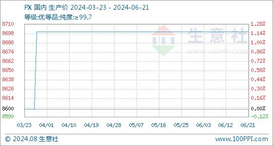 6月21日,生意社PX基准价为8700.00元/吨,与本月初持平。