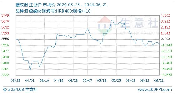 6月21日生意社螺纹钢基准价为3535.11元/吨