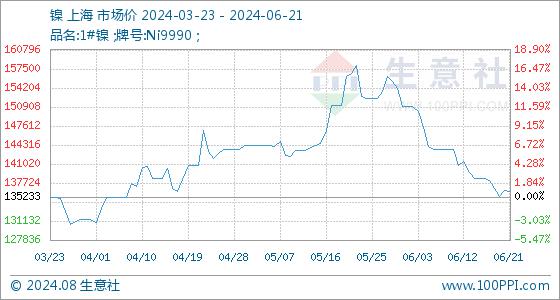 6月21日生意社镍基准价为136441.67元/吨