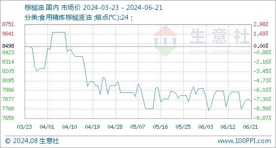 6月21日生意社棕榈油基准价为7878.00元/吨