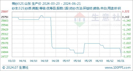 6月21日生意社棉纱32S基准价为24950.00元/吨