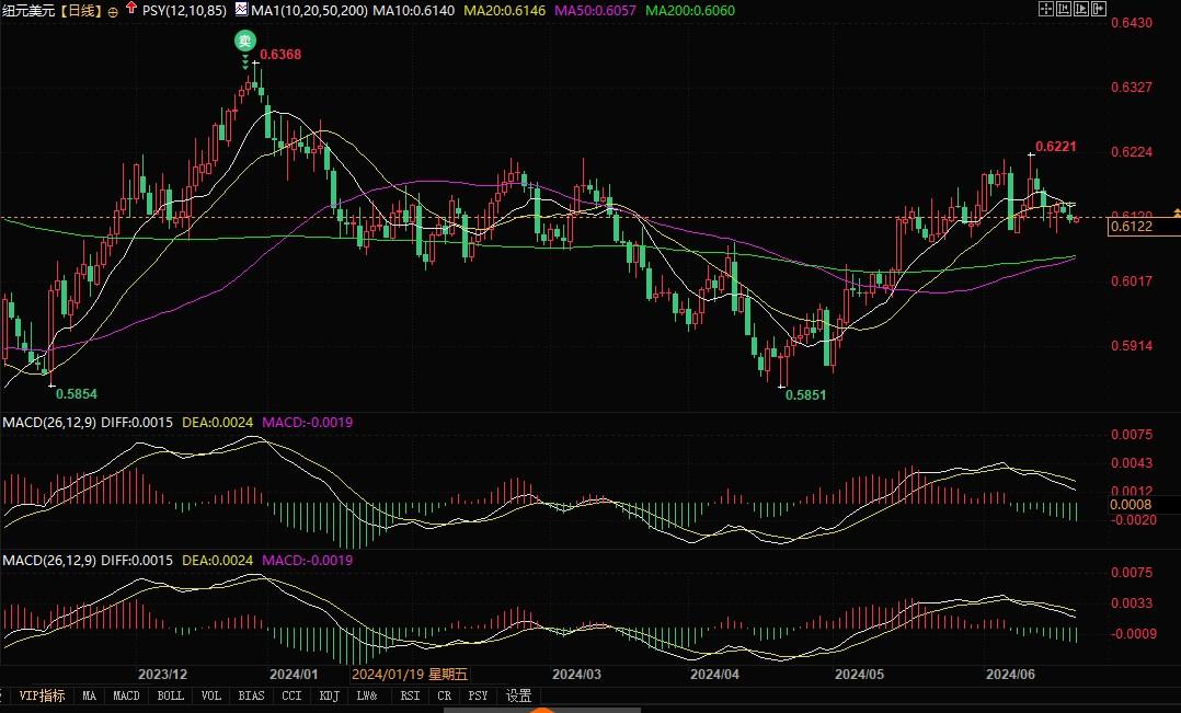 北京时间6月21日11:34,纽元兑美元报0.6122/24