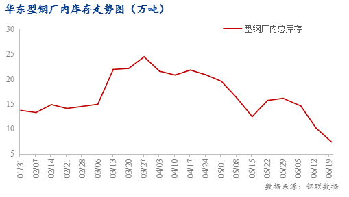概述:本周华东地区型钢市场价格趋弱运行。从盘面来看,期螺震荡下行,市场观望情绪浓厚,市场信心不足;从原料端来看,原料钢坯价格调整幅度不大,成品材底部支撑稍显不足;从供应方面来看,厂内库存持续高位,去库降库或成为持续化背景。据贸易商反馈,目前供需矛盾突出,受天气影响下游需求有所减少,多以扩大优惠力度促成交。综合来看,预计下周华东型钢价格弱稳运行。