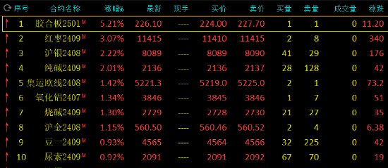 早盘收盘,国内期货主力合约跌多涨少。红枣、沪银涨超2%,纯碱、集运指数、氧化铝、烧碱涨超1%;跌幅方面,沪铅、锰硅、硅铁、豆二、焦炭、20号胶跌超1%。