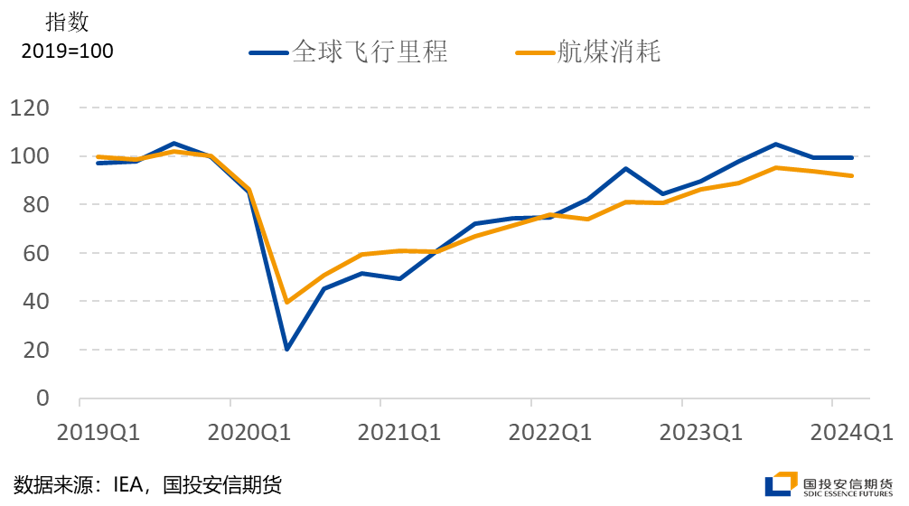 以2019年全球航空飞行旅程及航煤消耗量作为基准,2023年一季度至2024年一季度的飞行旅程平均达2019年的98.16%,但平均航煤消耗量仅达2019年的91.14%。新入市机型的燃油经济性大幅提升是航煤消费恢复落后于飞行旅程恢复的主要原因,例如C919机型油耗水平约每人每百公里2.4升,同级客机如A320、B737油耗则在3至5升甚至更高。随着更多机型进行更新换代,目前单位里程航煤消耗下降的趋势仍将持续,长远来看可再生航煤市场的加速扩张也将从另一个角度对传统航煤需求形成抑制。