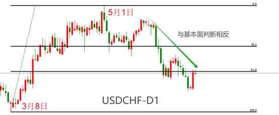 5月1日,USDCHF触及阶段性高点,随后进入回落走势。截至目前,累计跌幅已经超过3%。3月份瑞士央行已经降息一次,货币政策角度考虑,USDCHF应当保持升势。5月1日至今的回落走势与货币政策逻辑相反,原因是什么?答案是:避险属性。在2015年之前,瑞郎是与日元齐名的避险货币。2015年黑天鹅事件之后,瑞郎的避险属性被削弱,但仍然存在。当美元指数走势疲软时,在避险属性的加持下,瑞郎往往能够实现超额的升幅幅度。我们认为,在6月份瑞士央行二次降息之后,降息通道形成,瑞郎的避险属性被削弱,后市在货币政策逻辑影响下,出现持续性贬值走势概率较高。