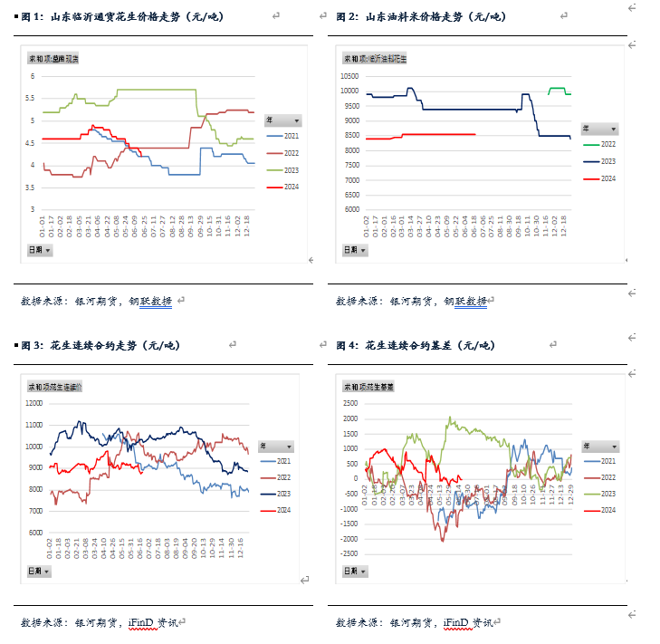 2024年上半年花生库存仍较高,现货持续下跌。6月中旬河南产区遭遇干旱,花生种植收到影响,但现货仍偏弱。下半年市场交易焦点转向新季花生的种植面积及产量,目前市场预期全国花生种植面积增加10%以上。但7-8月天气仍有较大的不确定性,尤其是产区容易遭受降雨的影响,关注7-8月份的降雨情况。盘面花生10仍会炒作天气,波动也会加大。一旦面积增产符合预期,预计新季花生通货底价在4.0元/斤附近。
