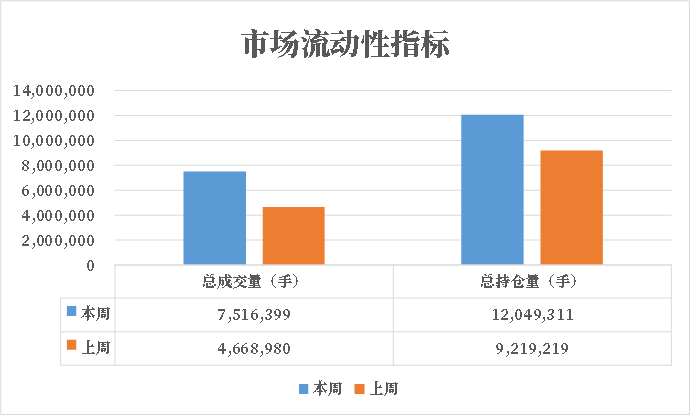 商品期权市场总持仓量:本周主力商品期权合约持仓量约为12,049,311手,相比上周9,219,219手,上涨30.7%。