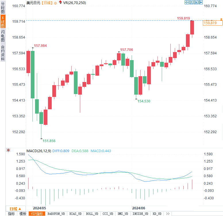 本周,美元在全球外汇市场上表现强劲,主要得益于美国经济数据的强劲表现和美联储相对稳定的货币政策立场。美国6月企业活动创下26个月新高,就业市场回升,物价压力缓解,这些因素共同支撑了美元的强势。与此同时,其他主要央行的鸽派倾向与美联储形成鲜明对比,进一步凸显了美元的吸引力。