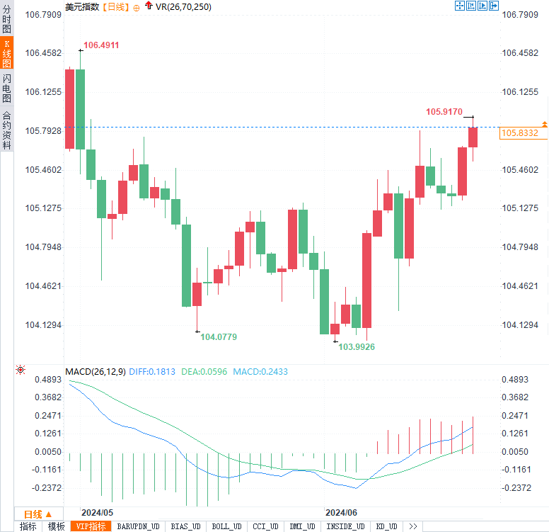 美元指数本周上涨0.2%,收盘报105.81,隔夜飙升0.41%,逆转了本周的跌势。麦格理的Thierry Wizman预计,美元将继续走强,因欧洲政治不确定性可能削弱企业和消费者信心。富国银行的Erik Nelson指出,在法国大选之前,外汇市场在推动大行情方面显得犹豫不决,法国大选是欧洲外汇市场的最大焦点。