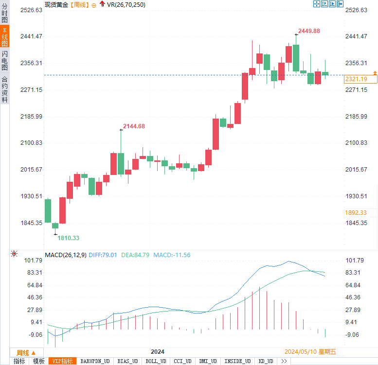 尽管黄金价格未能维持在2350美元/盎司以上的涨幅,但成功守住了2300美元/盎司左右的支撑位。这表明市场在当前价格水平上存在一定的买盘兴趣。