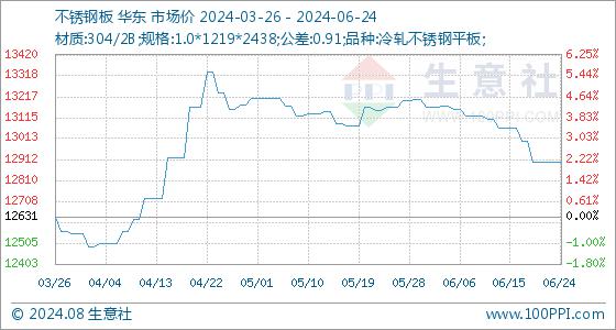 6月24日生意社不锈钢板基准价为12900.00元/吨