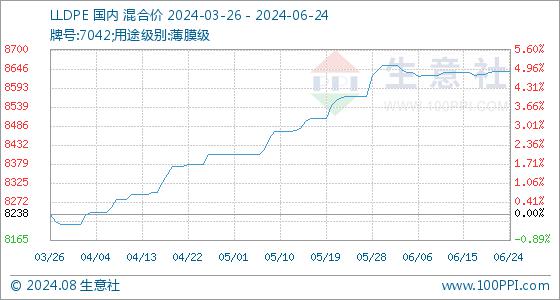 6月24日生意社LLDPE基准价为8638.57元/吨