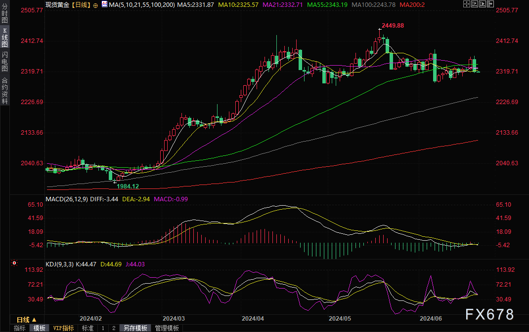 尽管市场情绪乐观,但黄金仍陷于相对狭窄的交易区间。上周五(6月12日),黄金未能维持在 2350 美元/盎司上方的可持续涨幅。不利的一面是,黄金成功守住了 2300 美元/盎司左右的支撑位。