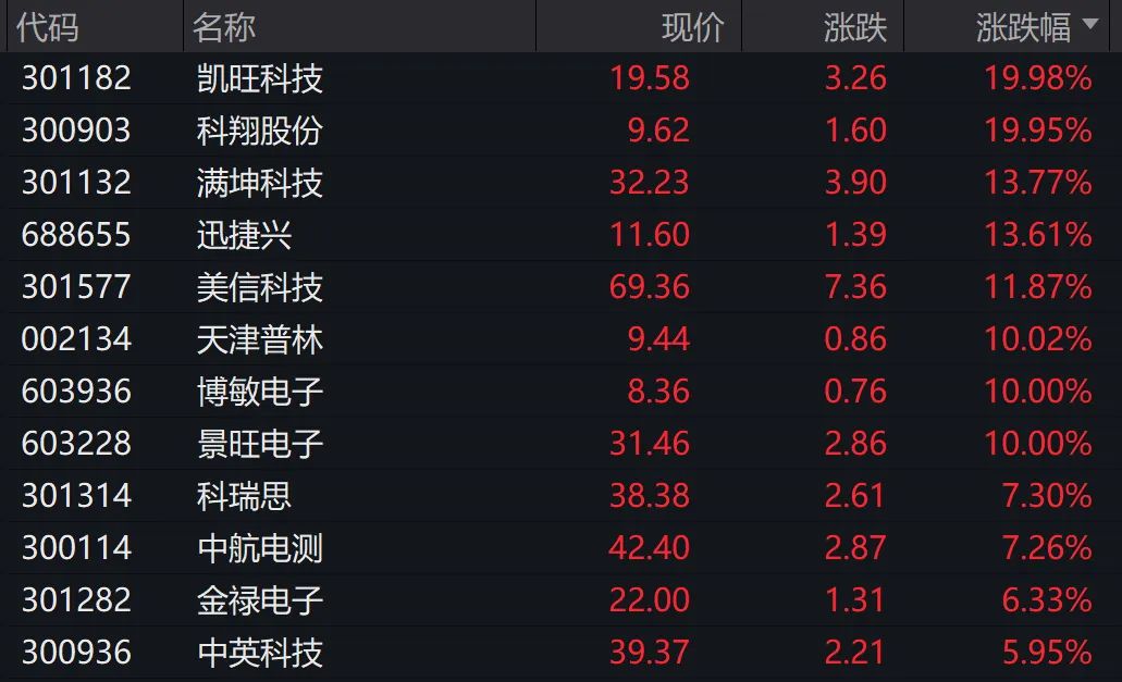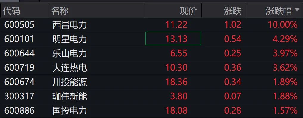 上涨板块方面,电力股逆势上涨,西昌电力涨停,明星电力、乐山电力等跟涨。此外,以PCB、汽车芯片为代表的科技股方向继续走强。