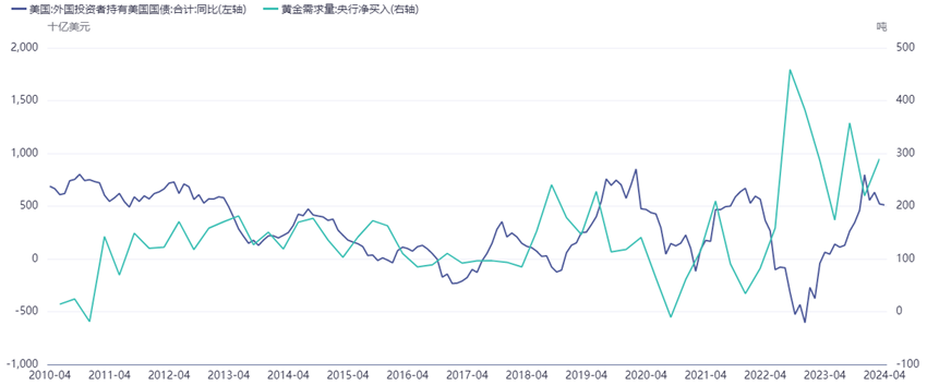 图三. 美债海外持有与央行购金