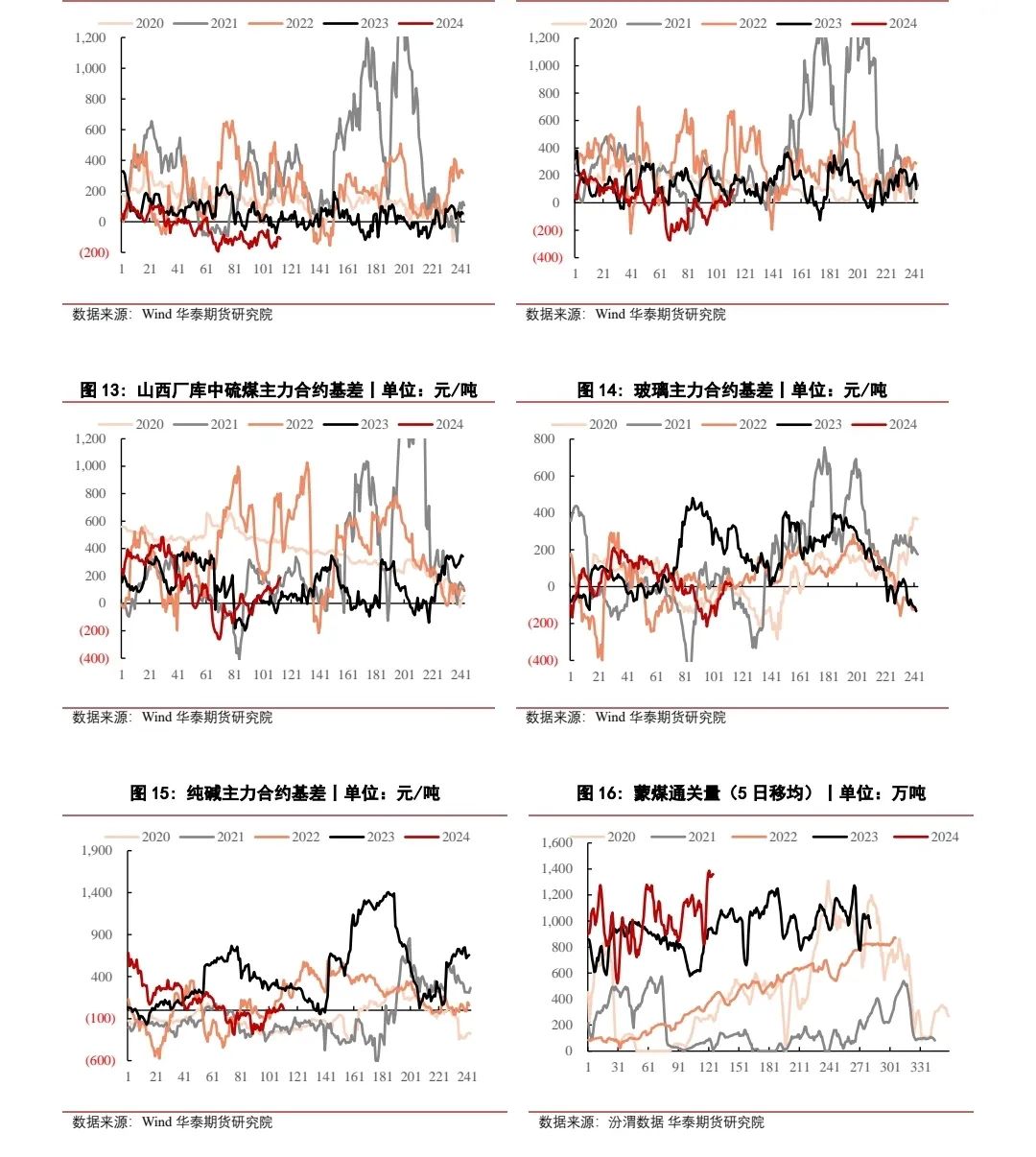 纯碱方面,昨日纯碱主力合约2409大幅下跌收于2023元/吨,下跌114元/吨,跌幅5.33%。据昨日隆众数据显示,纯碱厂库累至95.33万吨,其中重碱41.54万吨小幅回落,轻碱53.79万吨大幅提升,行业持续累库中。阿拉善报价轻、重碱相比上周均下跌100元/吨,全国现货市场价格普遍下跌,中游降价去库为主,厂家库存有所累积。整体来看,今年纯碱产量同比大增,随着新投产能的不断达产,一定程度对冲了夏季检修供应端的减量。纯碱短期价格维持震荡偏弱格局,考虑年内的持续高产出,预计行业总库存将不断向上累计,从而不断向下压制纯碱利润,纯碱供给过剩的矛盾年内难以缓解。