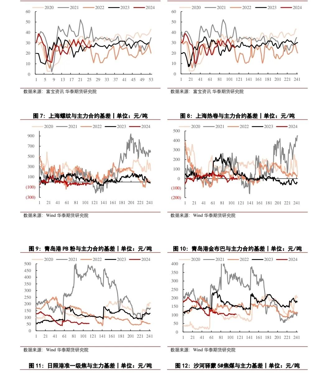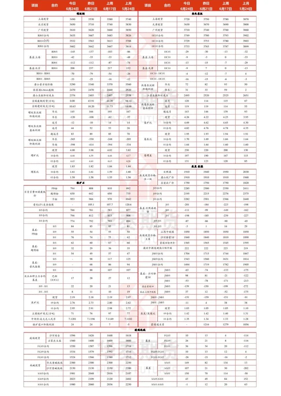 综合来看:目前焦炭维持紧平衡局面,库存小幅增加,但仍处同期低位,随着下游建材需求进入淡季,刚需受到影响,钢厂利润收窄,铁水产量进一步向上空间有待观察,考虑到盘面升水结构,预计焦炭短期维持震荡偏弱运行,关注铁水产量变化情况。目前焦煤供需基本维持平衡,供给逐步恢复后库存延续回升。焦炭第二轮提降后焦化厂利润收窄,部分焦化企业亏损,压制原料煤价格。预计短期焦煤价格震荡偏弱运行,由于仓单交割方面的问题始终压制近月价格,月差呈现近弱远强格局,目前主力合约升水现货,需关注后续基差变动风险。