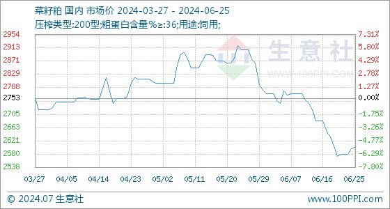 6月25日生意社菜籽粕基准价为2596.67元/吨