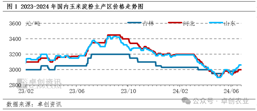 在经历一波连续上涨之后,近期国内玉米淀粉现货市场价格放缓,由于下游终端需求跟进不足,导致价格继续上涨动力略显乏力。主要企业暂选择稳价观望市场接受程度为主。下游终端与贸易商对于高价抵触心理显现,市场转入上下游僵持的状态。据卓创资讯数据显示,截止到6月24日,山东地区现货价格维持在3020-3100元/吨。随着玉米淀粉现货市场价格上涨至高位,下游终端与贸易商对于高价采购态度谨慎,多保持刚需补货为主,对于批量采购意向不足。