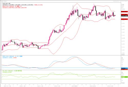技术层面,从日线图来看,各期限均线交织,技术指标MACD交织,短线走势变数较大,偏向震荡运行,下方继续留意2300关口和6月7日低点2286.68附近支撑,强支撑在100日均线2246.98附近。若金价顶破55日均线2341.04附近阻力,则增加短线看涨信号。进一步阻力参考2350和上周高点2368.62附近位置。