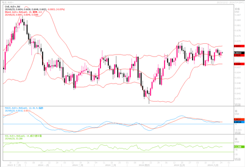 周一(6月24日),澳元兑美元升0.2%,收盘报0.6655。 交易员们还在等待周三的澳洲5月消费者物价报告以及周五的美国个人消费支出(PCE)物价指数,以了解今年两家央行各自的宽松路径和时间点。当前,市场预计澳洲5月消费者价格指数(CPI)料较前月下降约0.2%,但同比升幅可能从3.6%回升至3.8%。这将为7月底发布的季度报告提供参考,而几天后澳洲央行召开8月政策会议。市场认为,在明年4月之前降息的可能性很小。而利率期货暗示到那时美国利率将下降100个基点。这也是澳元在近期美元走强的情况下仍能坚守在0.6580-0.6710区间的原因之一。澳洲联邦银行(CBA)国际经济主管Joseph Capurso预计,澳元兑美元本周将继续在0.66-0.67美元的狭窄区间内交投。届时如果澳洲CPI数据弱于经济学家的普遍预期,澳元/美元可能会略微下跌。因此,在周三出炉消费者物价数据前,澳元/美元预料仍保持着窄幅区间横盘的走势形态。