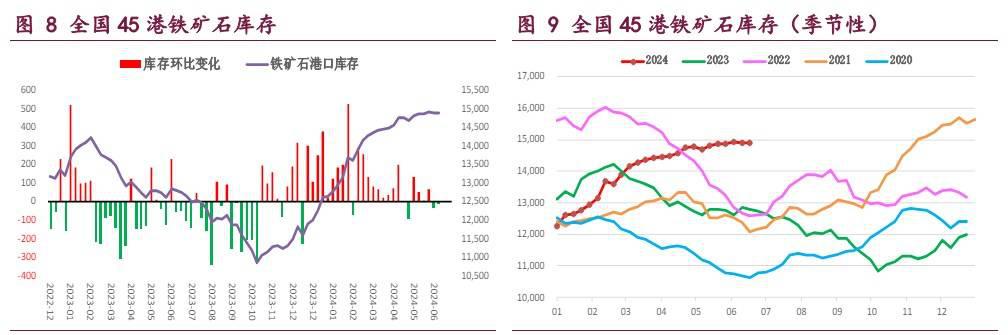 与此同时,国内港口矿石到货有所回落,但海外矿商发运则是大幅增加,同样创下年内单周新高,多因财年末矿商冲量所致,按船期推算国内港口到货量将重回高位,相应的国内矿山生产平稳,整体也维持高位,内外矿石供应依旧积极。