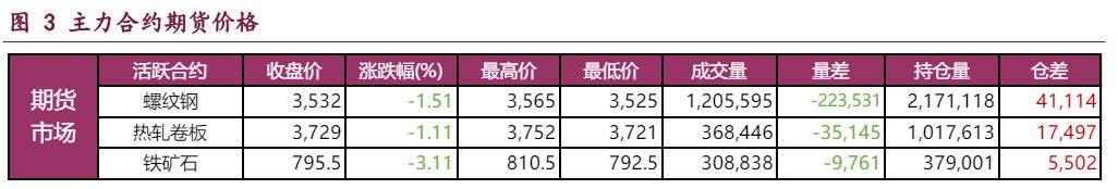 主力期价弱势震荡,录得 1.11%日跌幅,量缩仓增。目前来看,热卷供需两端迎来变化,两者均高位回落,基本面变化不大,价格相对偏强运行,但热卷需求存隐忧,一旦走弱则高供应下供需矛盾将凸显,届时价格易承压下行,重点跟踪需求变化情况。