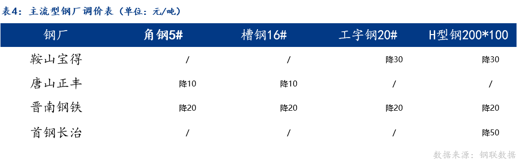 2、成交量为20家型钢厂当日成交,其中包括工字钢6家、角钢7家、槽钢7家。