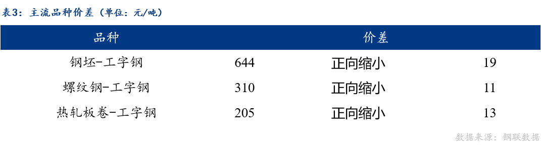 从品种价差来看,今日工字钢与钢坯、与螺纹钢、热轧板卷价差正向缩小。