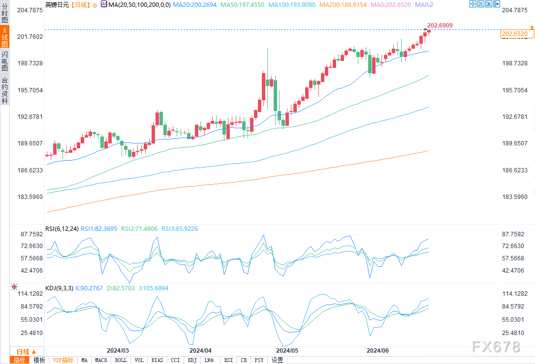 汇通财经APP讯——周二(6月25日)纽约时段,美元/日元保持稳定,交投于159.720附近,涨幅0.08%。以下是对美元/日元、欧元/日元、英镑/日元三组货币对的技术分析。