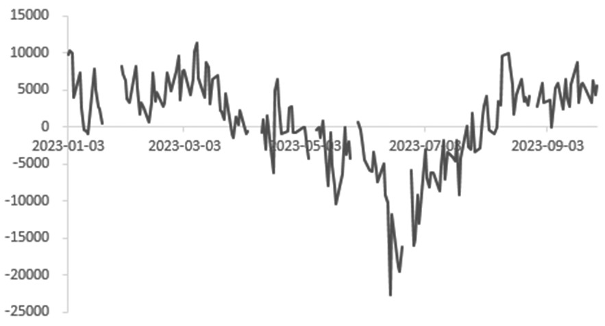 按照该盈亏设置公式,4月12日的进口盈利为979.74元/吨。2023年1—9月末的锡锭进口盈亏情况如下图所示:
