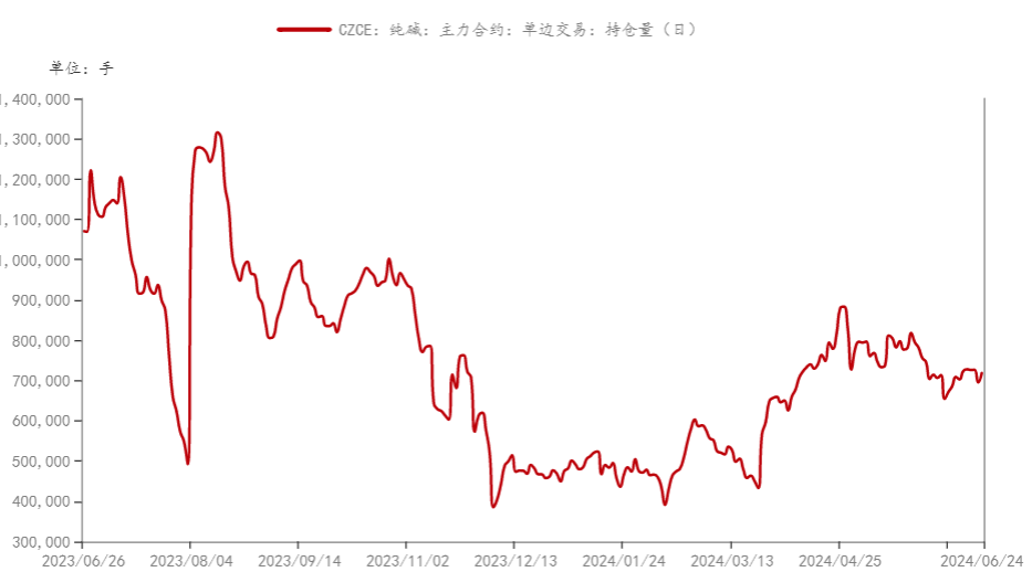 截至6月21日,纯碱2409合约持仓695357手,较上一周减1.1%。