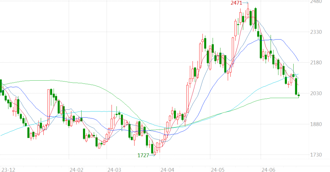 价格区间(1920,2150),操作建议:偏空思路,下方第一支撑在2000附近。
