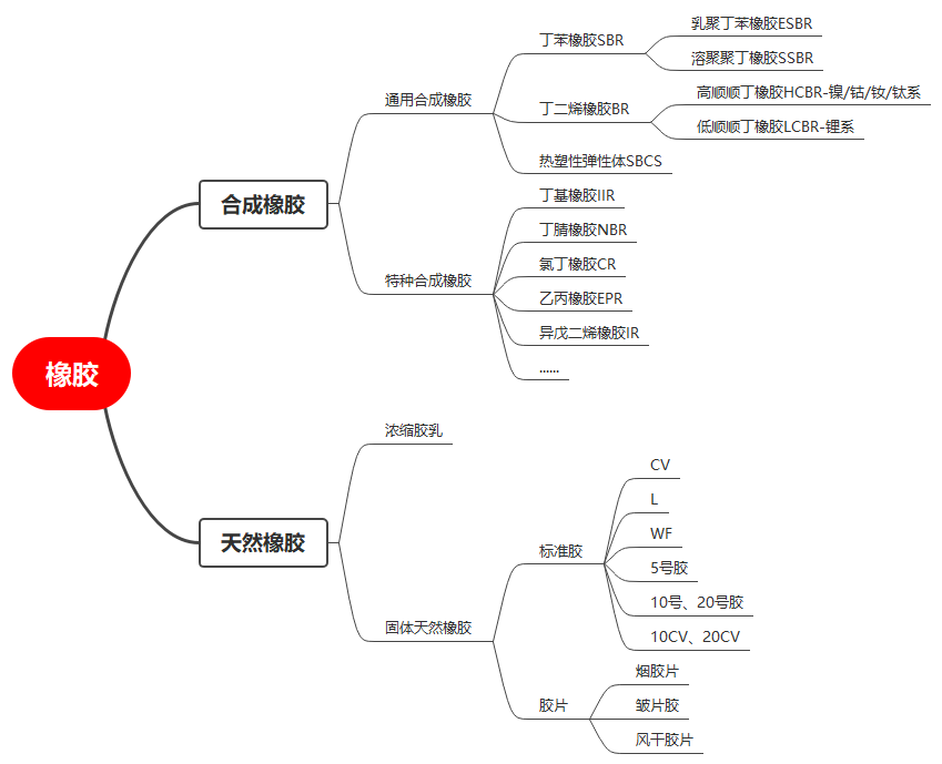 要说橡胶这一大家子,那可就多了。按制作工艺我们把橡胶分为天然橡胶和合成橡胶两大类。天然橡胶是指从橡胶树上采集的天然胶乳,经过凝固、干燥等加工工序而制成的弹性固状物。合成橡胶是由人工合成的高弹性聚合物,也称合成弹性体,广义上指用化学方法合成制造的橡胶,以区别于从橡胶树生产出的天然橡胶。